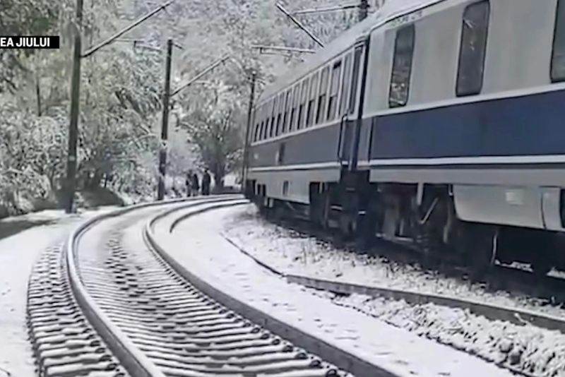 Un tren cu călători a fost oprit brusc în zona Văii Jiului după ce un copac a căzut pe șine, din cauza zăpezii. Autoritățile au intervenit de urgență pentru a elibera zona afectată. Din fericire, nu s-au raportat victime.