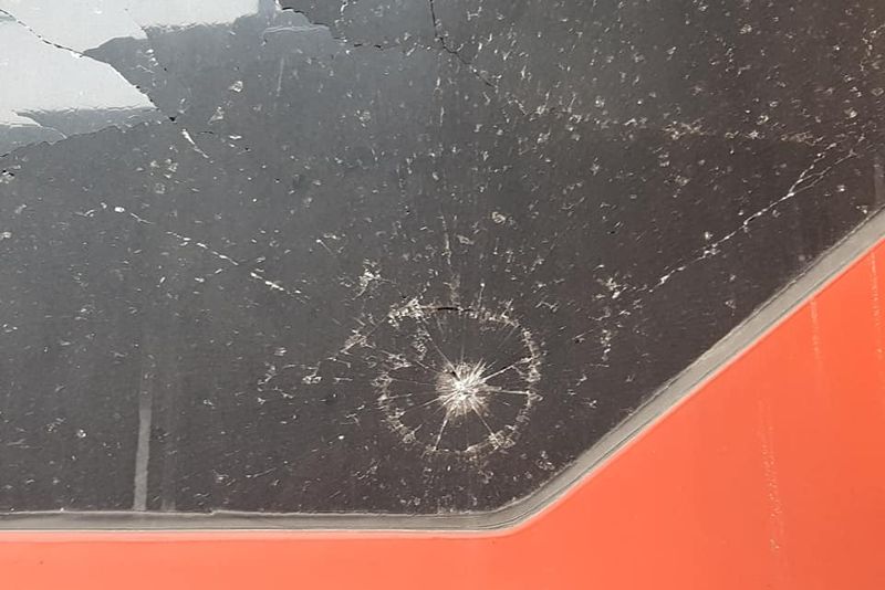 Un autobuz achiziționat recent de Societatea TUR se întorcea sâmbătă seara cu unul dintre geamuri sparte.