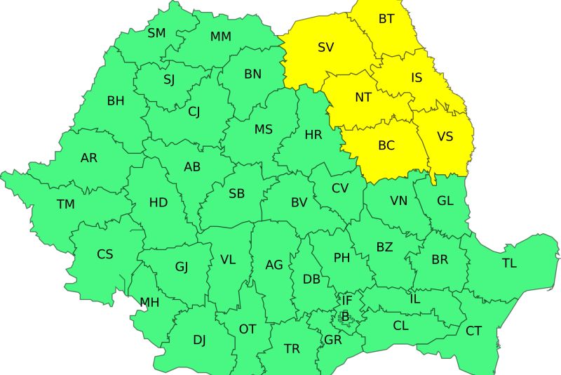 Temperaturi de -20 de grade Celsius. România, lovită de vortexul polar și ninsori. Trei sferturi din țară, sub cod galben de ger extrem - HARTĂ