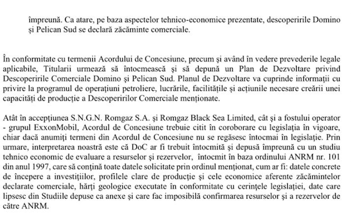 „Au fost două propuneri: ca operarea să fie alternativă împreună cu Petromul și se doreau negocieri cu OMV și discuții cu firma din Bahamas. Negocierile erau departe de a fi finalizate înainte de a fi eu revocat. În perioada mandatului meu, am trimis o echipă și au luat date financiare. Analiza trebuia făcută mai târziu, când începeau negocierile cu Exxon pentru preluarea părților. Eu am spus că, pe de o parte, să intrăm în discuții pe cooperare cu Petrom. Pe 13 ianuarie m-a revocat. În decembrie am scris o scrisoare la OMV.